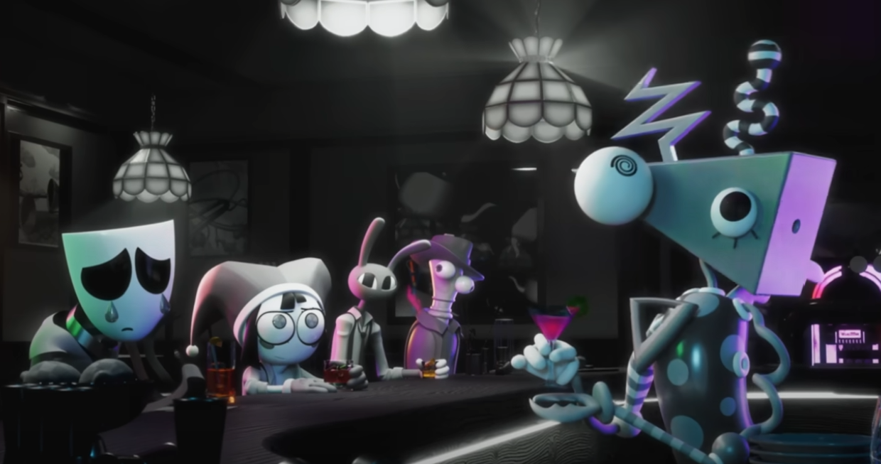 Moving on, they go for a sort of noir bar scene that really nails the art direction and then just wastes a lot of time. They try to humanize Zooble a little more so that you remember she isn’t just a sucky, misanthrope stick-in-the-mud, but that she was also a tattoo artist and a bartender on top of those things. She and Jax have a really bizarre back and forth that doesn’t sound human because both of them feel like they’re trying to wrap their dialogue in a mystery box that you can unpack in a Youtube analysis video.